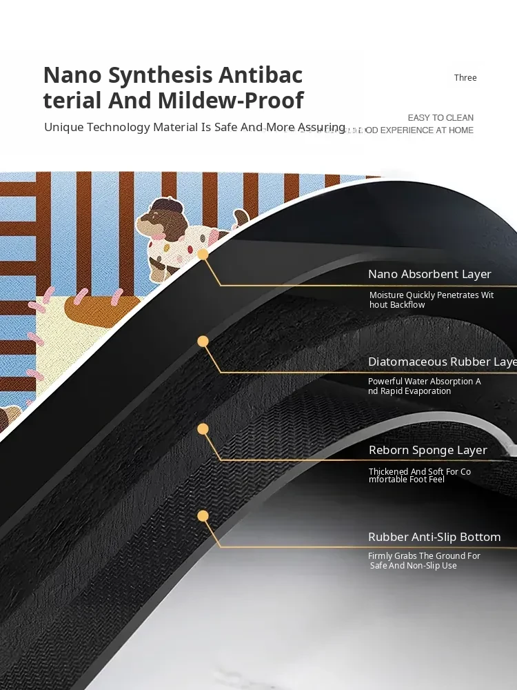 Cartoon Cat Bathroom Mat - Absorbent Diatomaceous Earth Toilet Rug, Non-Slip, Quick-Dry, Unique Shape for Entryway and Bathroom Safety