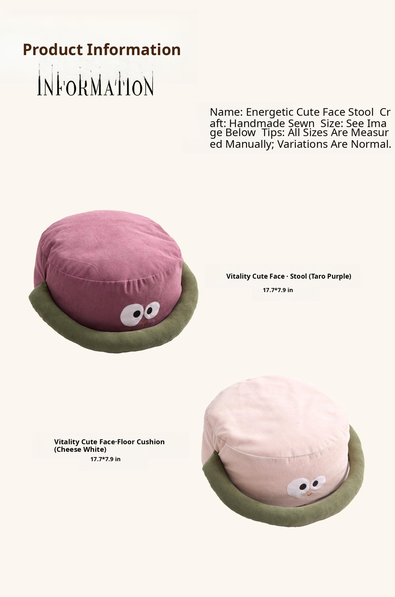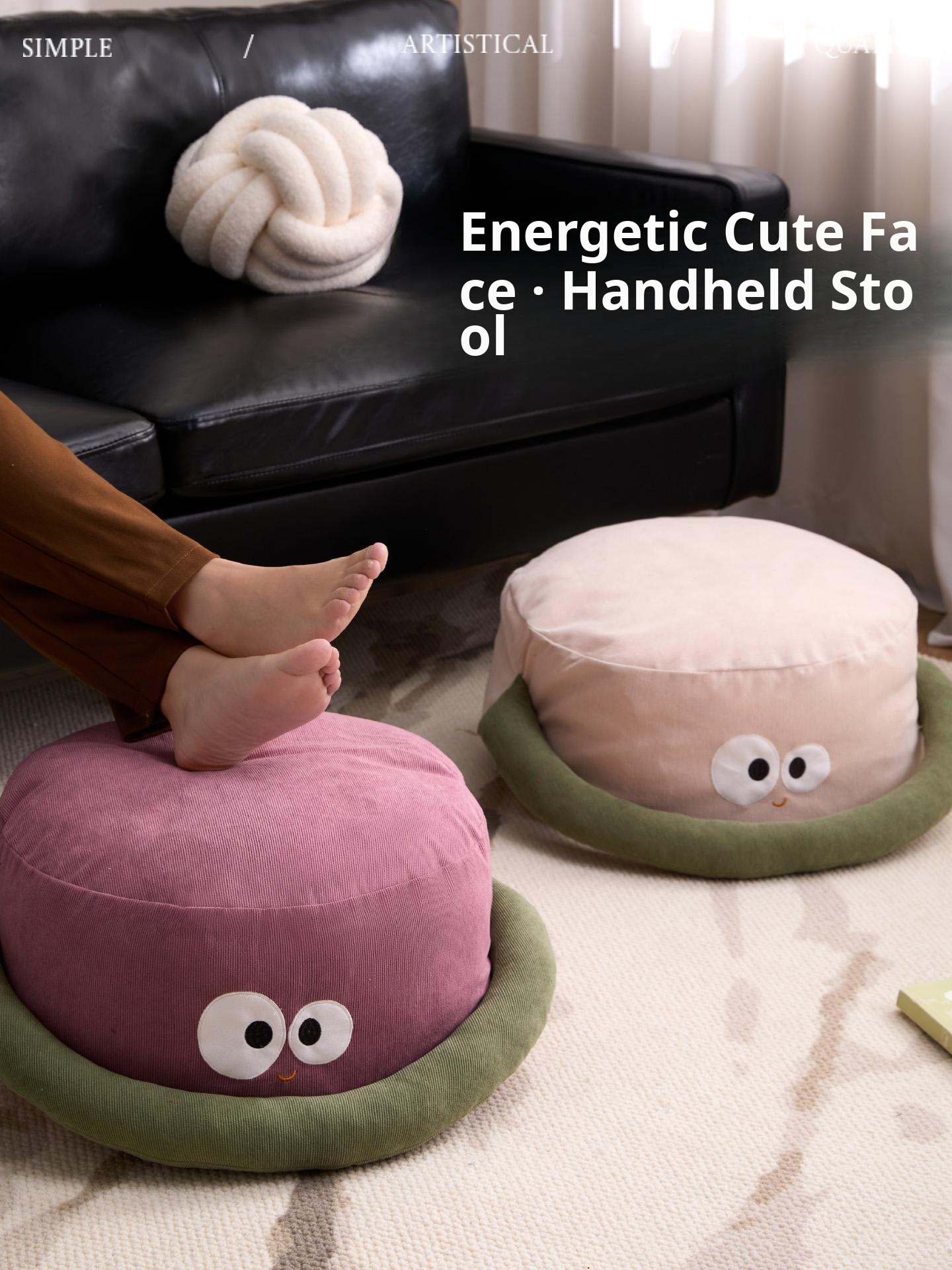 Vitality Cute Face Handheld Ottoman-Cheese White
