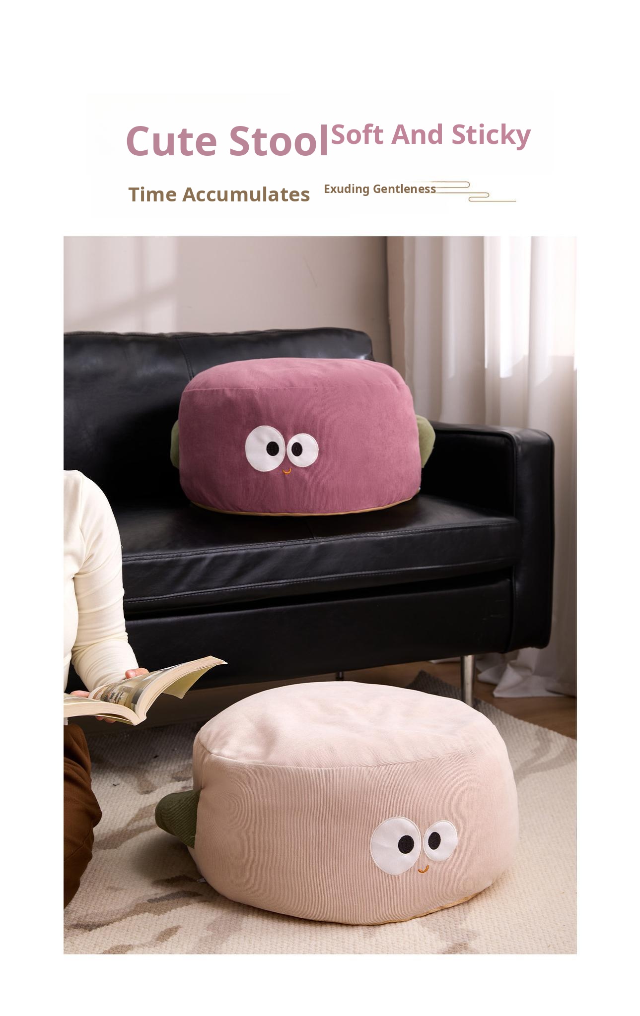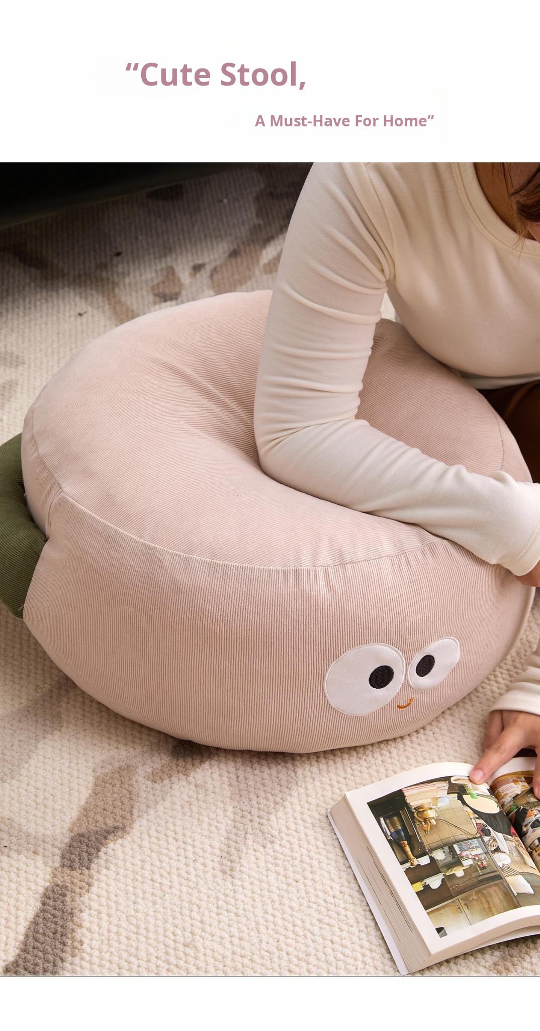 Cute Cartoon Girls' Dopamine Floor Pouf – Cozy Lazy Sofa Footrest for Kids, Perfect for Living Room, Plush Cushion, and Stylish Carpet Seat Pad