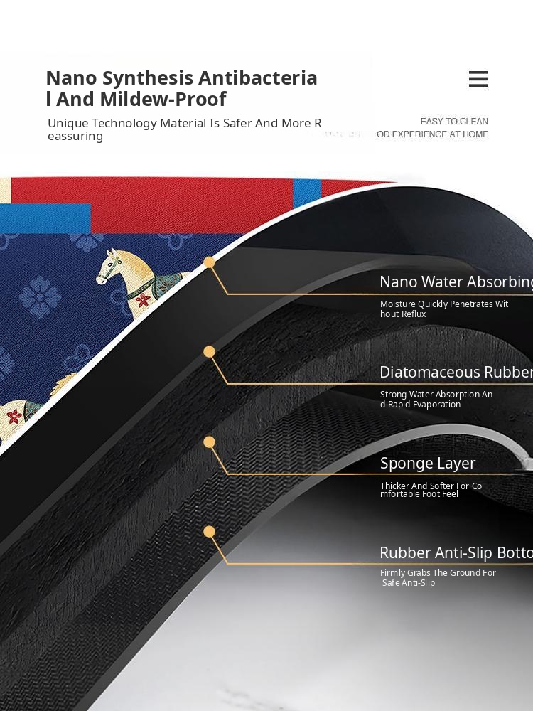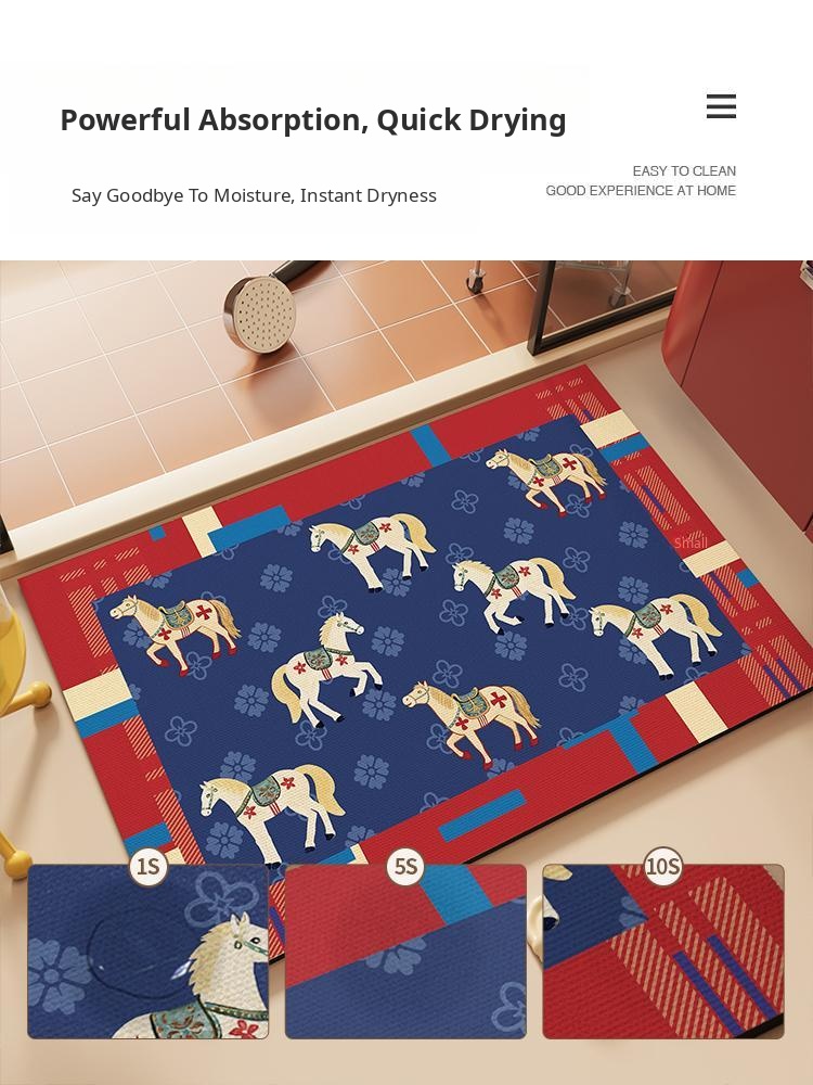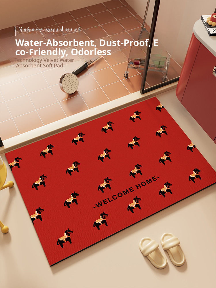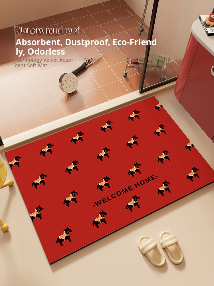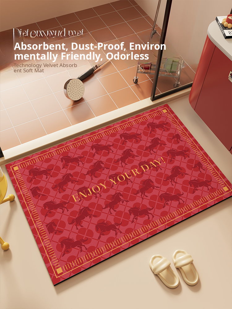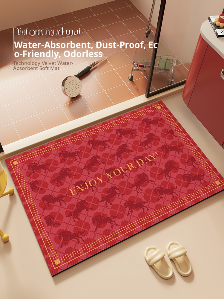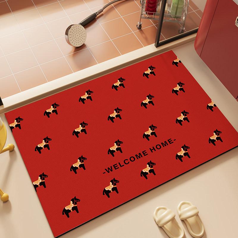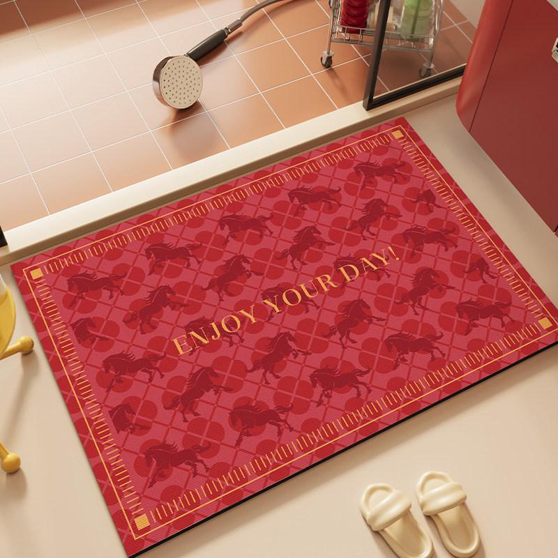 "Festive Red Bathroom Mat for Year of the Horse – Absorbent Non-Slip Diatom Clay Door Mat for Toilets and Entrances, Perfect for Adding a Touch of Celebration to Your Home!"