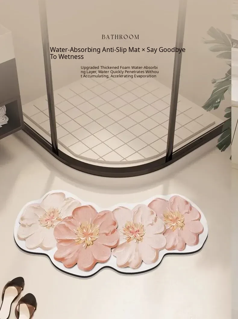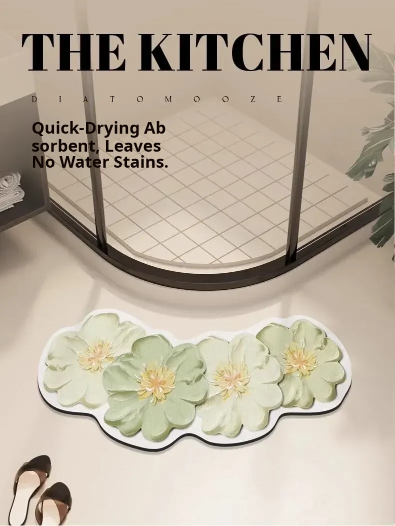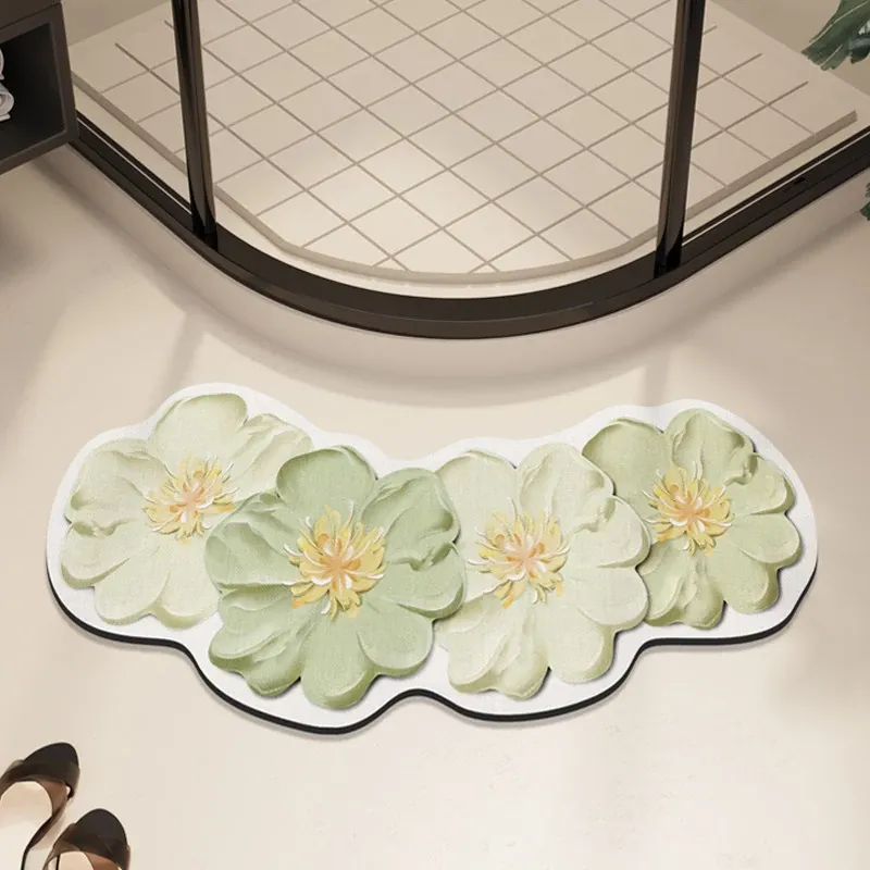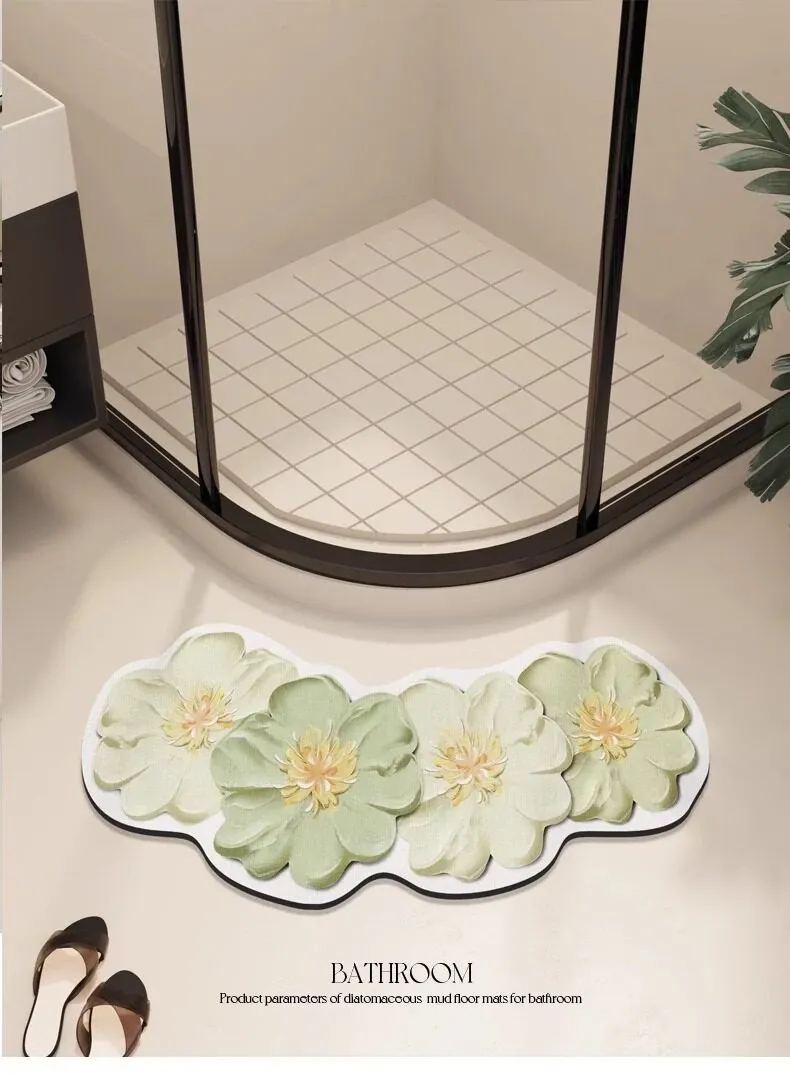Fresh and Stylish Curved Bathroom Mat - Quick-Dry, Absorbent Diatom Mud Bath Mat for Shower Door Entrance, Fan-Shaped Non-Slip Carpet