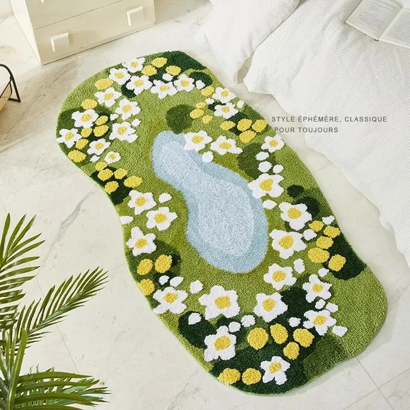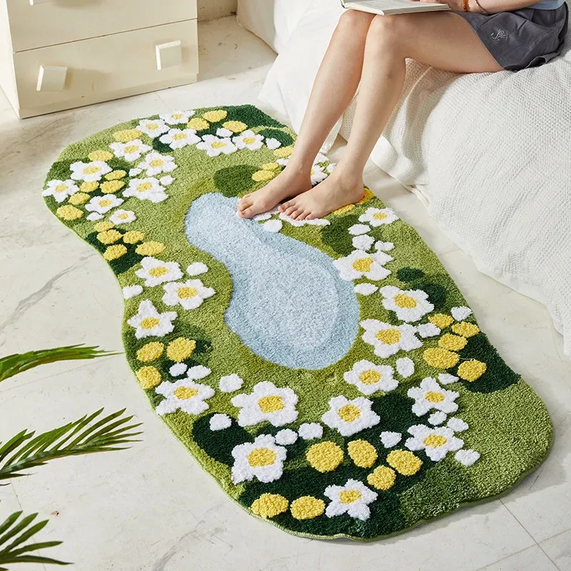 Luxurious Green Moss Bedroom Area Rug - Plush Velvet Carpet for a Chic Touch, Irregular Shape Non-Slip Floor Mat for Living Spaces