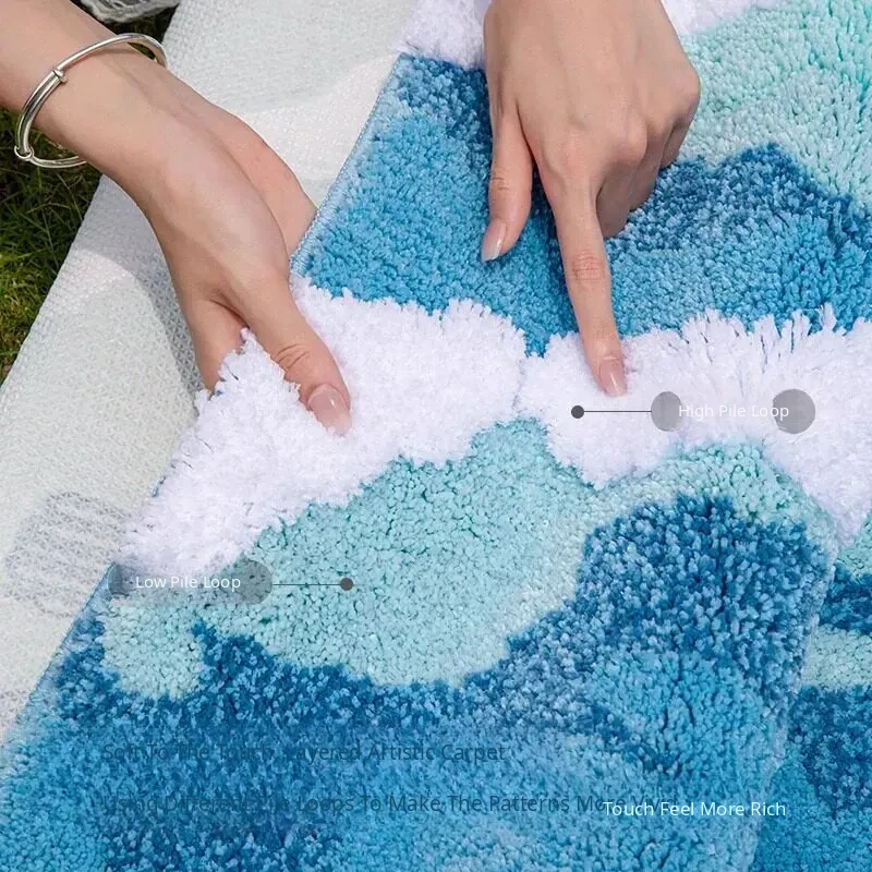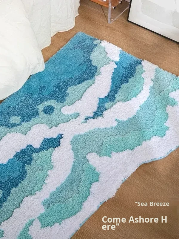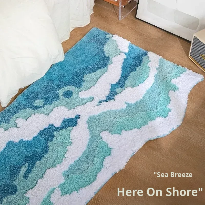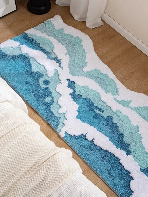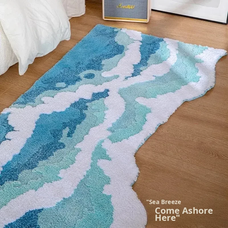 Ocean Wave Plush Bedroom Carpet - Soft Area Rug for Living Room Sofa, Bedside, Kids' Reading Nook, and Home Foot Mat - Perfect for Comfort and Style