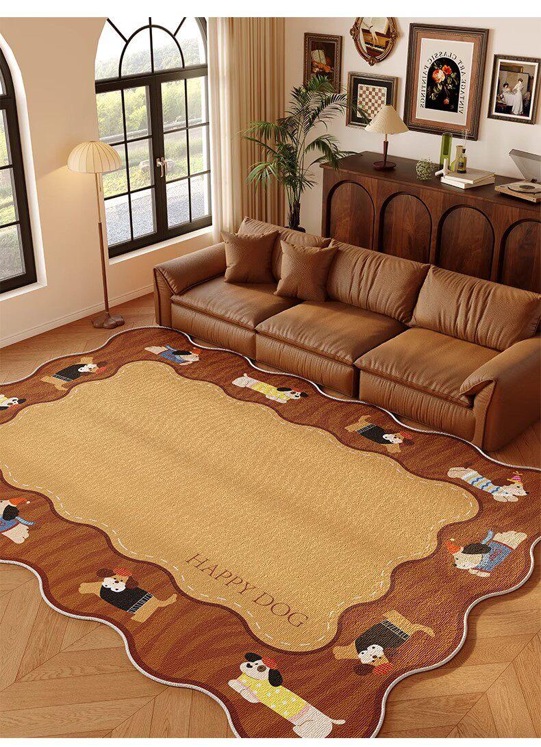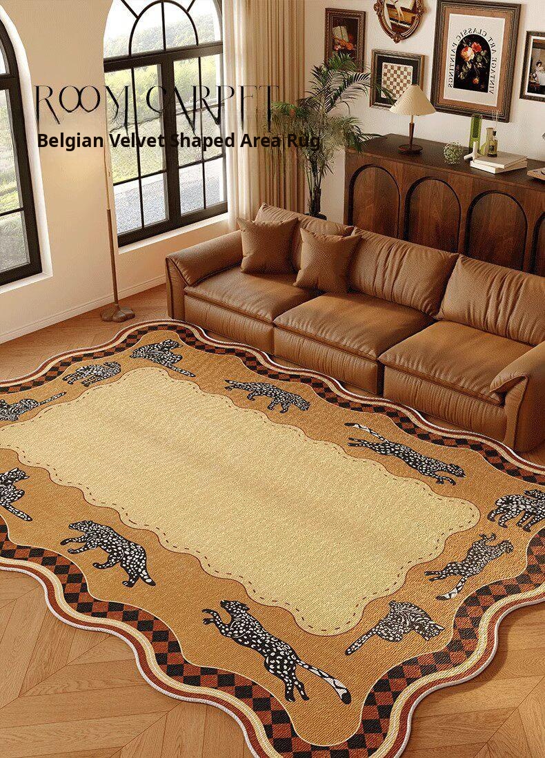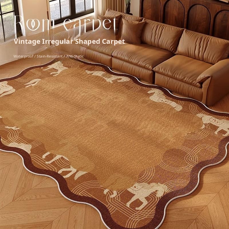 Vintage Brown Living Room Sofa Carpet - American Retro Unique-Shaped Bedroom Bedside Mat - Premium Non-Slip, Easy-Clean Area Rug for a Cozy Home Atmosphere