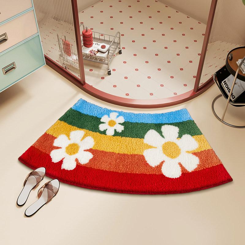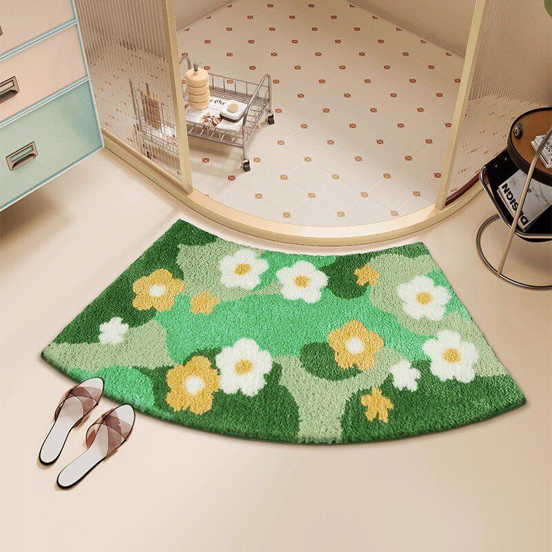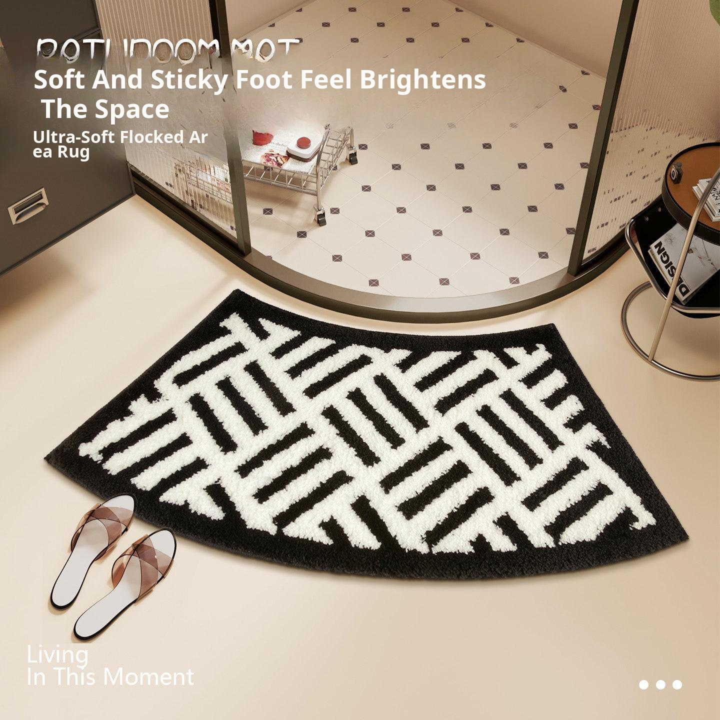 Winter Arc-Shaped Absorbent Bath Mat - Thick Non-Slip Carpet for Bathroom, Plush Velveteen Fan-Shaped Floor Mat for Cozy Comfort Underfoot