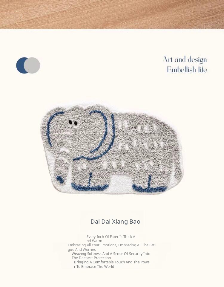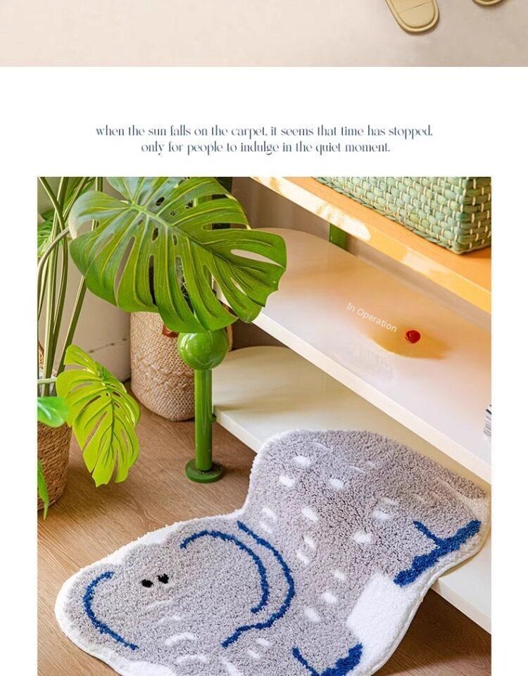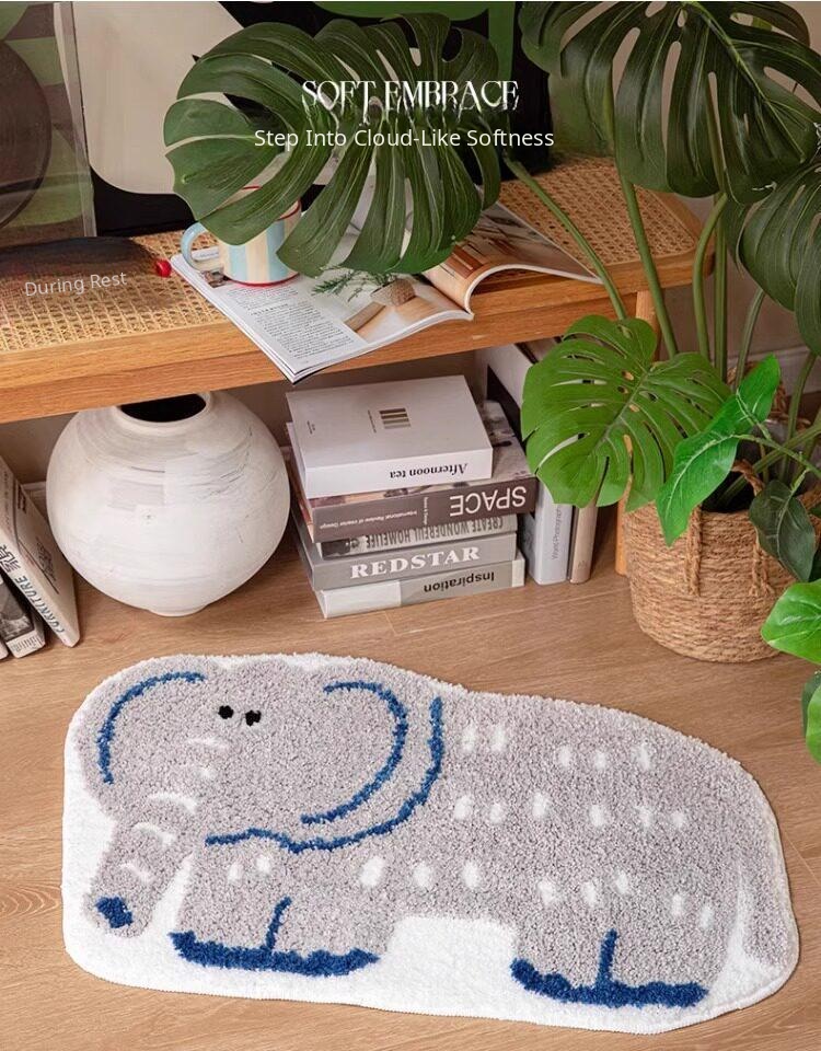 Curly Nose Elephant Flocked Rug