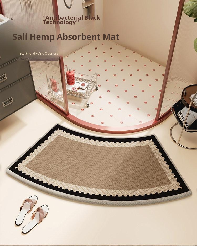 Wood Grain Arc-Shaped Bathroom Mat - Absorbent, Non-Slip Bathroom Rug for Shower Door - Cartoon Design Floor Carpet for a Fun and Safe Experience