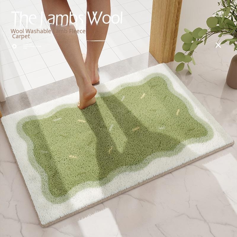 New Chinese Style Absorbent Bathroom Mat - Green Shaped Velvet Foot Pad, Non-Slip Shower Rug for Fast Drying in Toilets and Bathing Areas