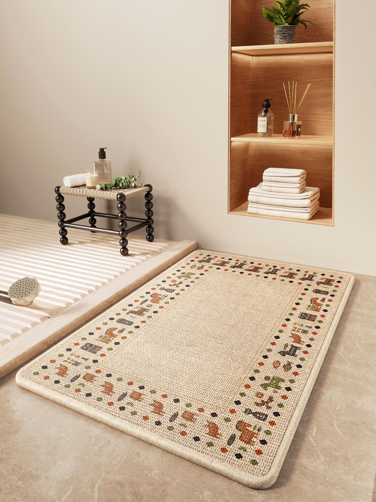 New Chinese Style Bathroom Mat - Absorbent Non-Slip Floor Carpet for Winter Toilets - Plush Velvet Bath Rug for Ultimate Comfort and Safety