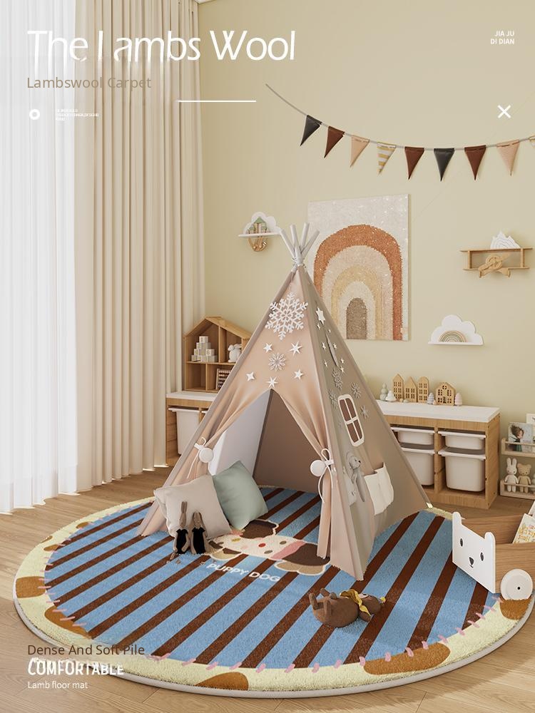 Thick Children's Room Carpet - Round Tent Play Mat for Living Room, Easy-Care Baby Crawling Mat, Cozy Winter Foot Pad for Relaxation Area