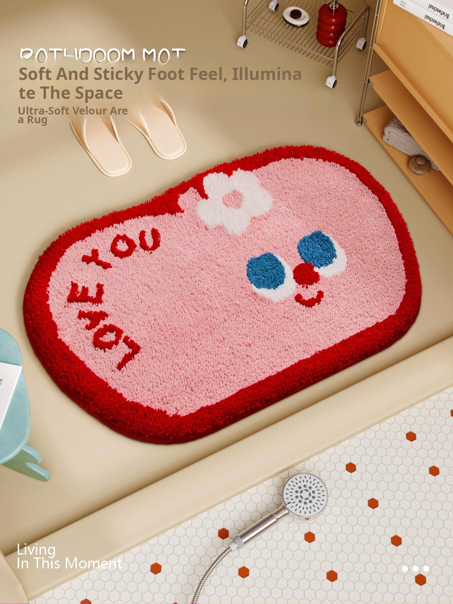 Cute Cartoon Apple Bathroom Velvet Mat - New Non-Slip Shaped Rug for Home, Quick-Dry and Absorbent Bath Mat for Your Bathroom