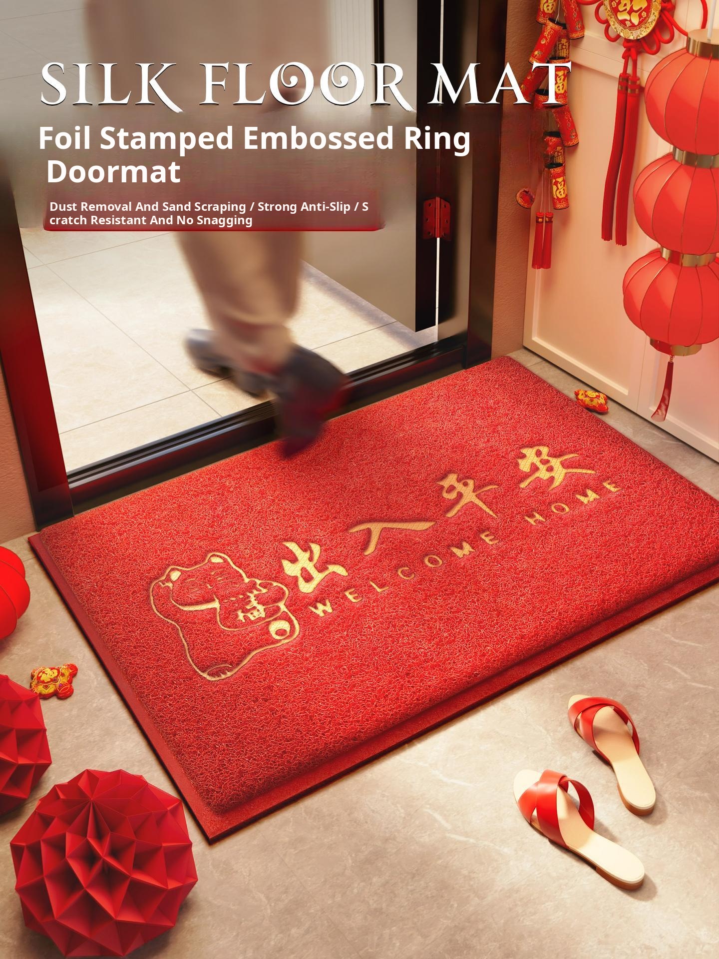 New Year Red Woven Entrance Mat – Durable, Non-Slip Outdoor Rug for Entryways, Perfect for Keeping Your Home Clean and Stylish!