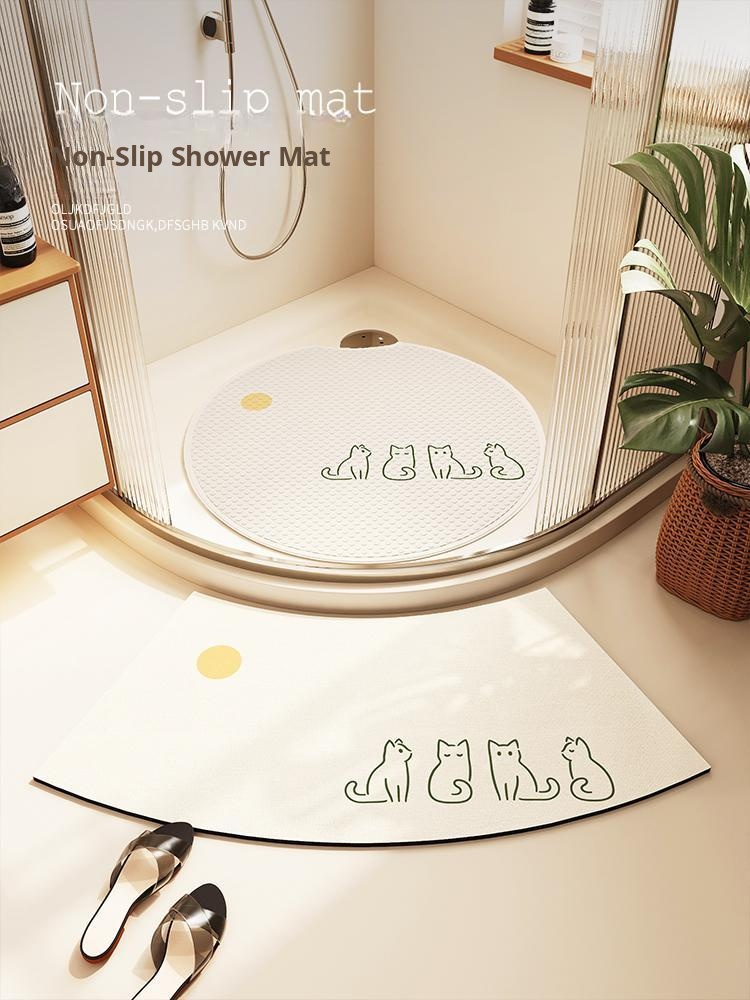 Curved Bathroom Mat - Silicone Diatomite Non-Slip, Super Absorbent Round Shower Rug for Safe and Stylish Bathing Experience