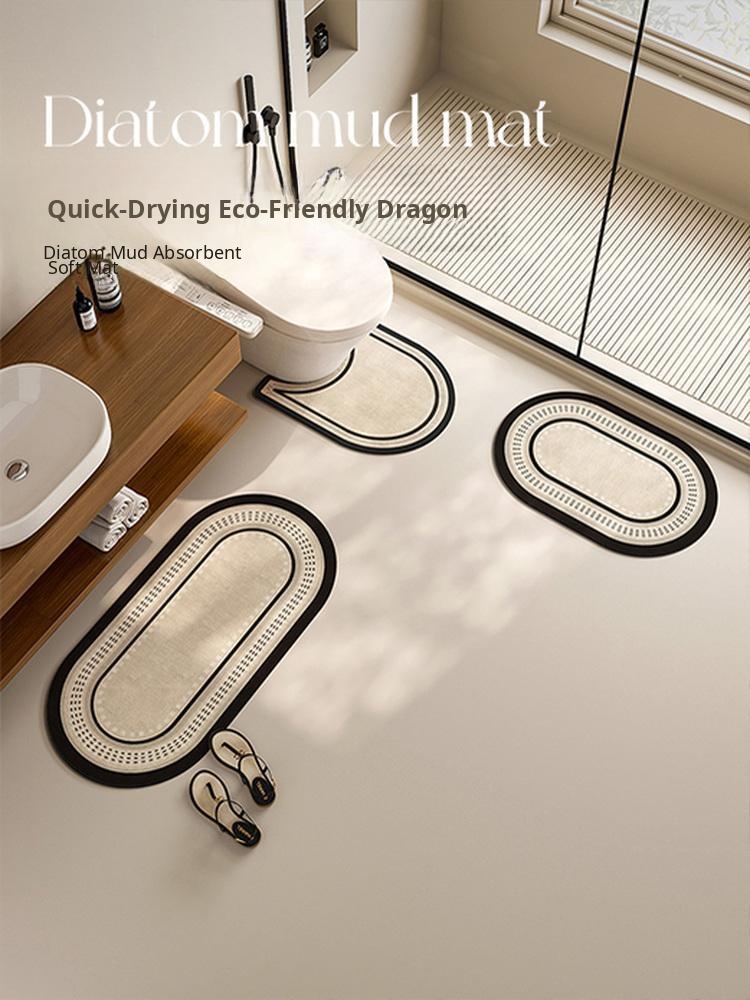 Compact Absorbent Bath Mat for U-Shaped Toilets - Non-Slip Diatomaceous Floor Mat for Bathroom Entrance, Perfect for Small Spaces