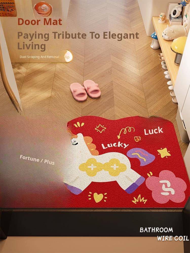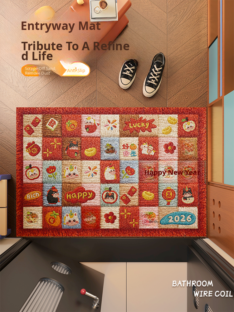 Celebratory Red Year of the Horse Entry Mat - Festive Doorway Carpet for New Year with Anti-Slip Design, Dirt-Blocking Door Mat for a Welcoming Home Entrance