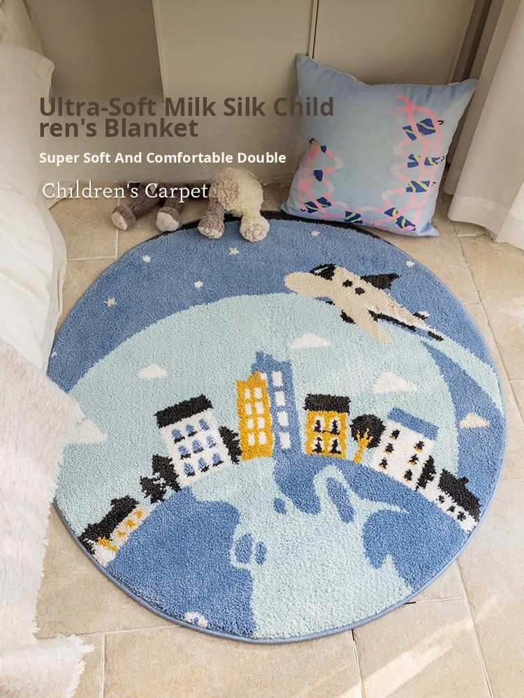 Cartoon Round Area Rug for Kids' Rooms - Plush Crawling Mat for Living Room, Bedroom, Study, and Play Area - Perfect for Reading Nook and Decoration