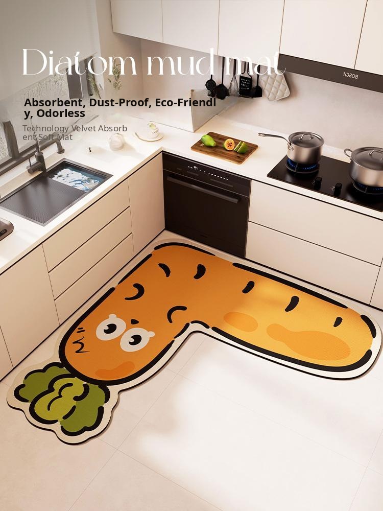 2026 New Kitchen Mat - Stylish L-Shaped Corner Anti-Slip Oil-Resistant Carpet with Cute Diatom Mud Design, Super Absorbent Floor Mat for Your Home