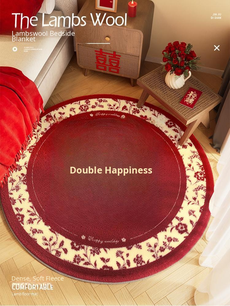 New Chinese Style Red Wedding Carpet Round Joyful Double Happiness Mat for Bedside - Perfect for Creating a Festive Atmosphere in Your Wedding Room