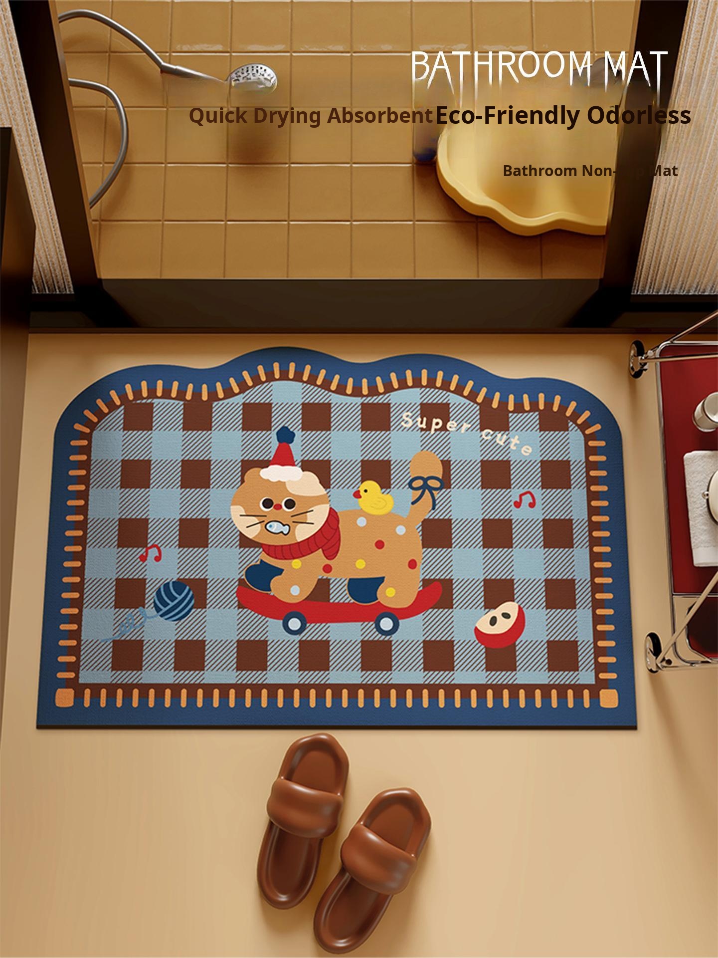 American Style Cartoon Bathroom Mat - Absorbent, Non-Slip, Quick-Dry Diatom Mud Carpet for Home Use, Perfect for Bathroom Entrance