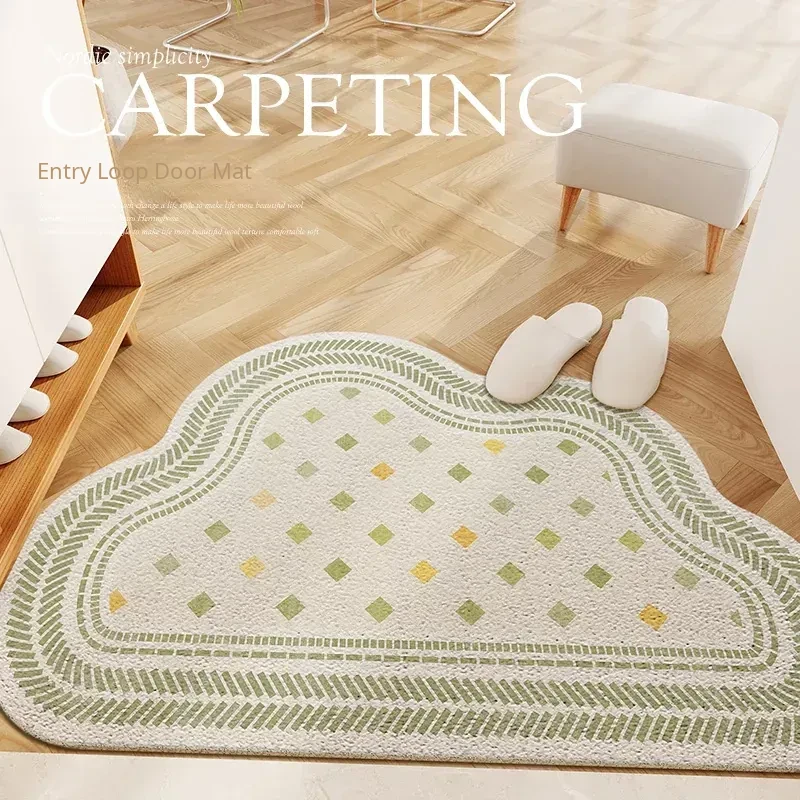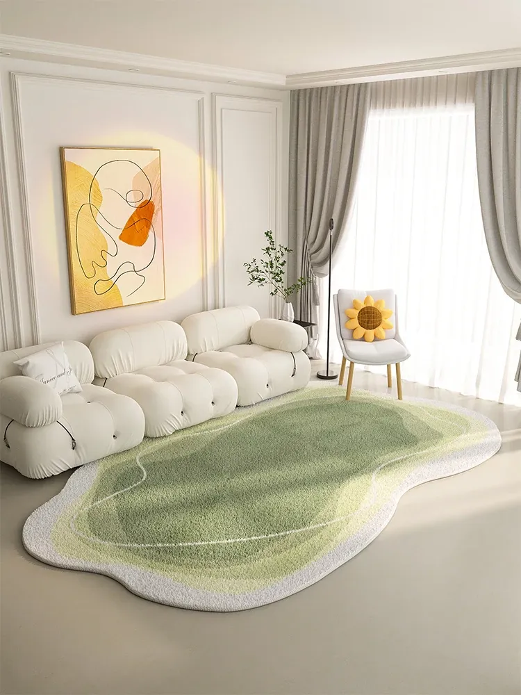Creamy Wind Living Room Rug - Irregular Shaped Bedroom Bedside Mat - Luxurious Green Home Carpet for Sofa and Coffee Table - Elevate Your Space with Style and Comfort