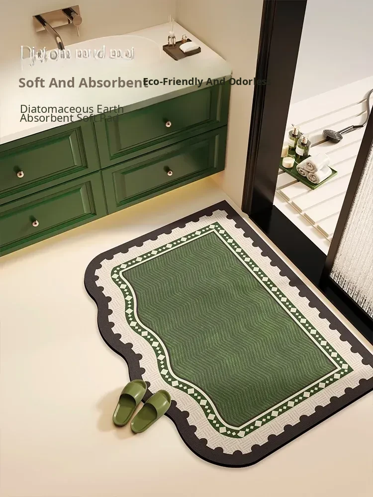 Eco-Friendly Non-Slip Kitchen Mat - Green Oil-Resistant, Easy-Clean Diatomaceous Bath Mat for Doorways and Bathrooms - Absorbent and Stylish Floor Rug