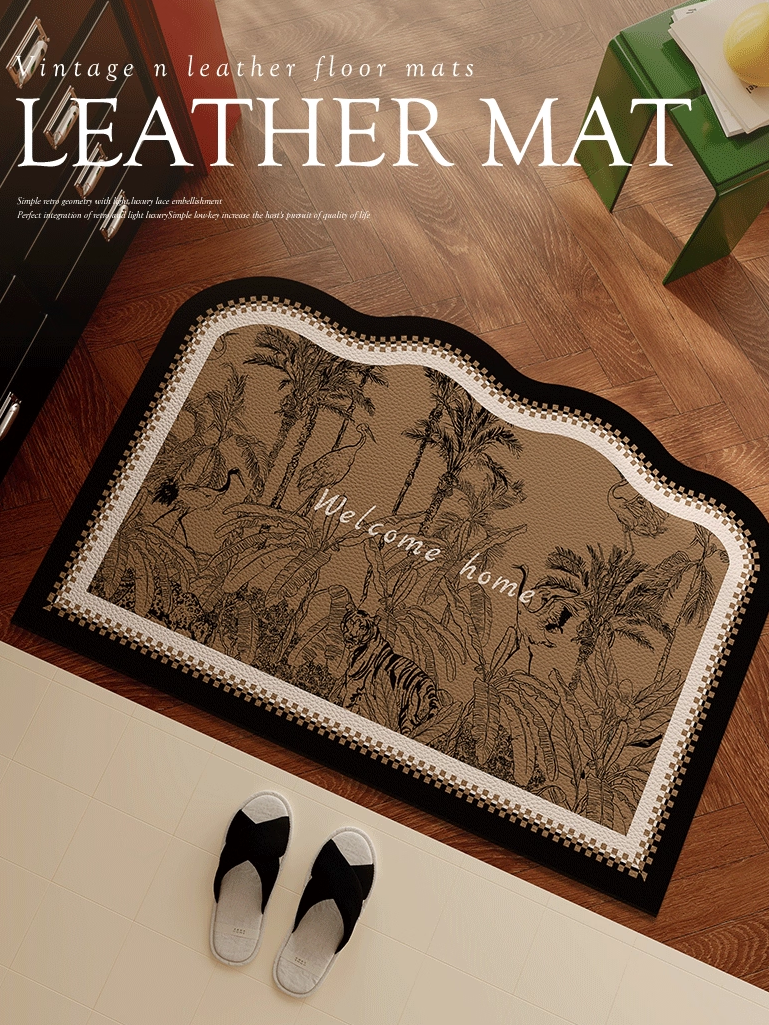 Vintage Leather Entrance Door Mat - Washable, Waterproof, and Stain-Resistant Foot Rug - Customizable Size for Your Home Entryway