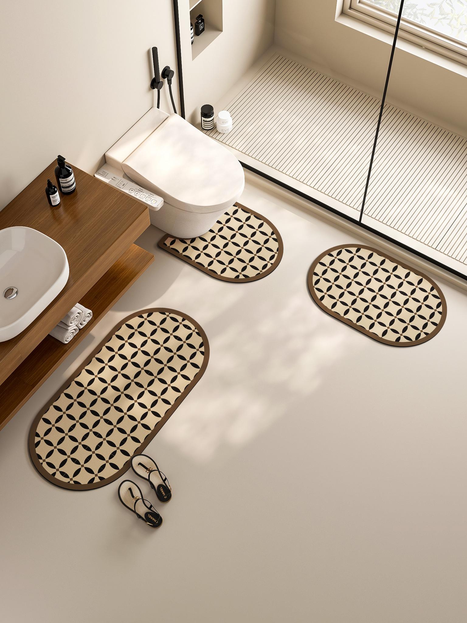 American Style U-Shaped Bath Mat Set - Absorbent Toilet Mat, Non-Slip Bathroom Floor Mats, 3-Piece Diatom Mud Home Carpet for Ultimate Comfort and Safety