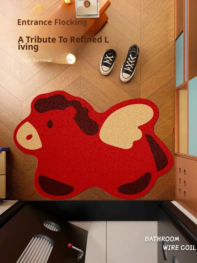 "Red Horse-Shaped Doormat for the Year of the Horse - Creative and Durable Non-Slip Entrance Mat for New Year Celebrations, Thick and Wear-Resistant Carpet"