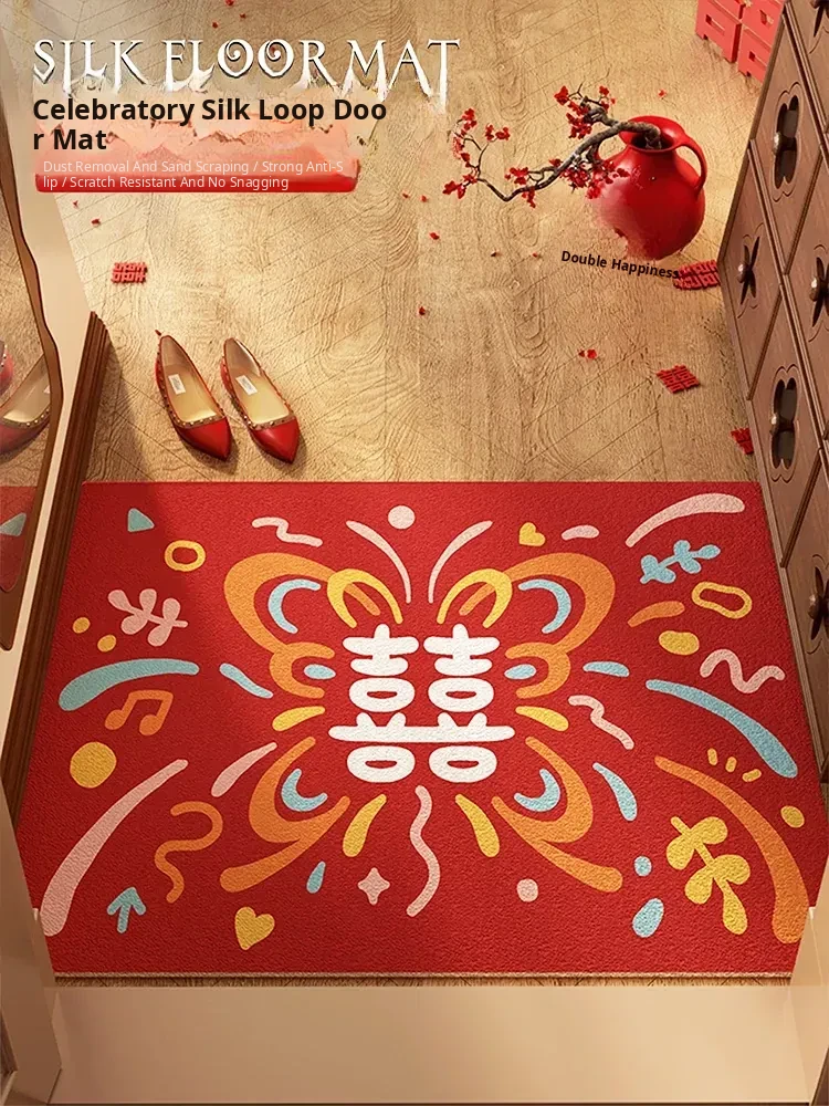 Red Wedding Entrance Mat with Double Happiness Symbol – Festive Non-Slip Carpet for Newlywed Homes, Perfect for Doorways and Celebrations
