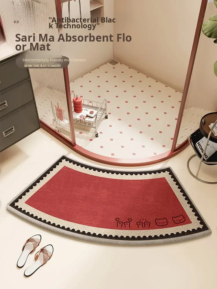 Red Arc-Shaped Bathroom Mat - Absorbent Diatomaceous Earth Toilet Entrance Rug, Stylish and Functional Bathroom Floor Mat for a Fresh and Clean Look