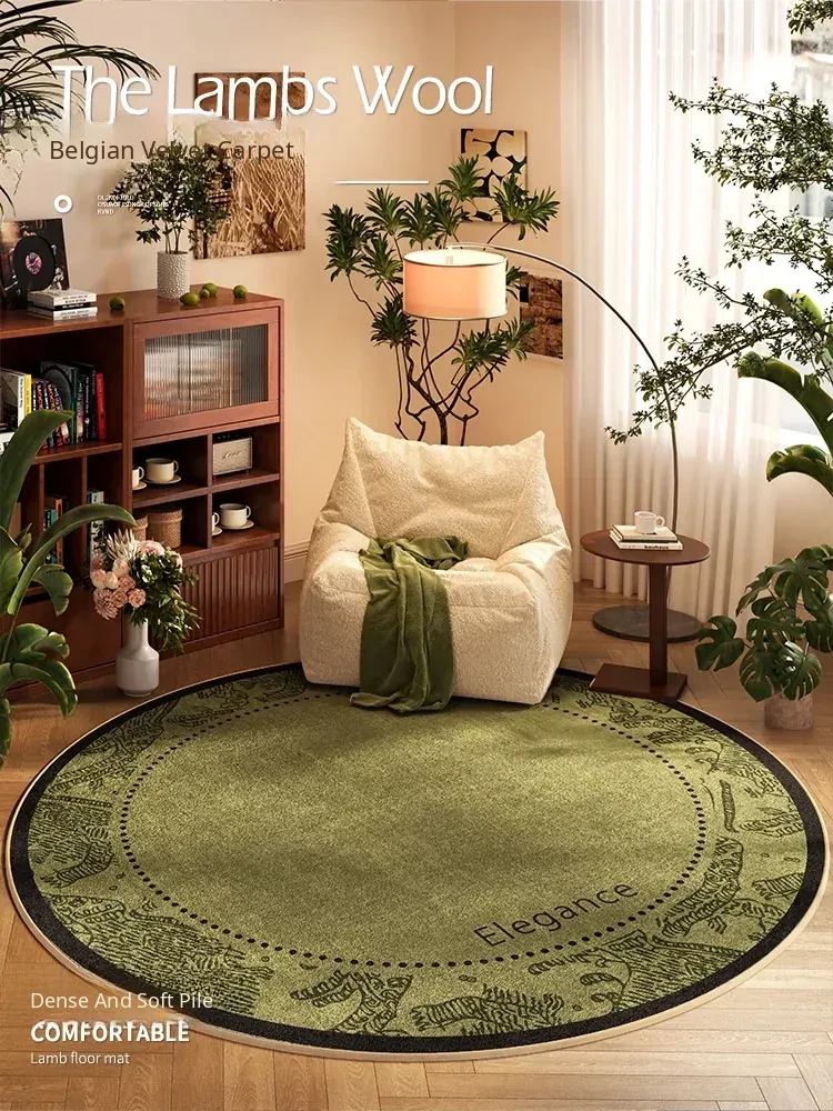 Vintage Round Area Rug for Living Room and Balcony – No Wash Required, Perfect for Leisure Spaces, Ideal for Green Sofas, Coffee Tables, and Rocking Chairs.