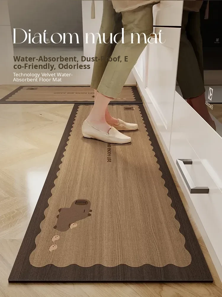 Cartoon Wood Grain Kitchen Mat - Absorbent Diatomite Floor Mat, Easy to Clean, Non-Slip and Oil-Resistant, Perfect for Your Kitchen!