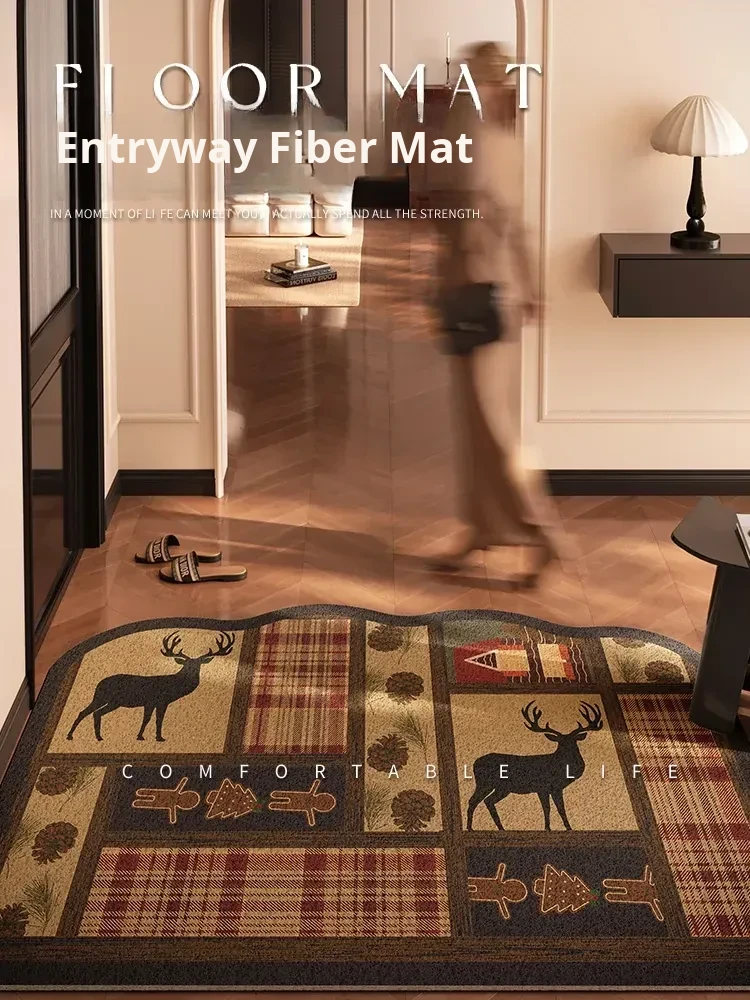High-End Vintage Christmas-Themed Entrance Door Mat - Unique Shape, Customizable, Easy-Care Carpet for Your Hallway, Perfect for Adding Festive Charm to Your Home!
