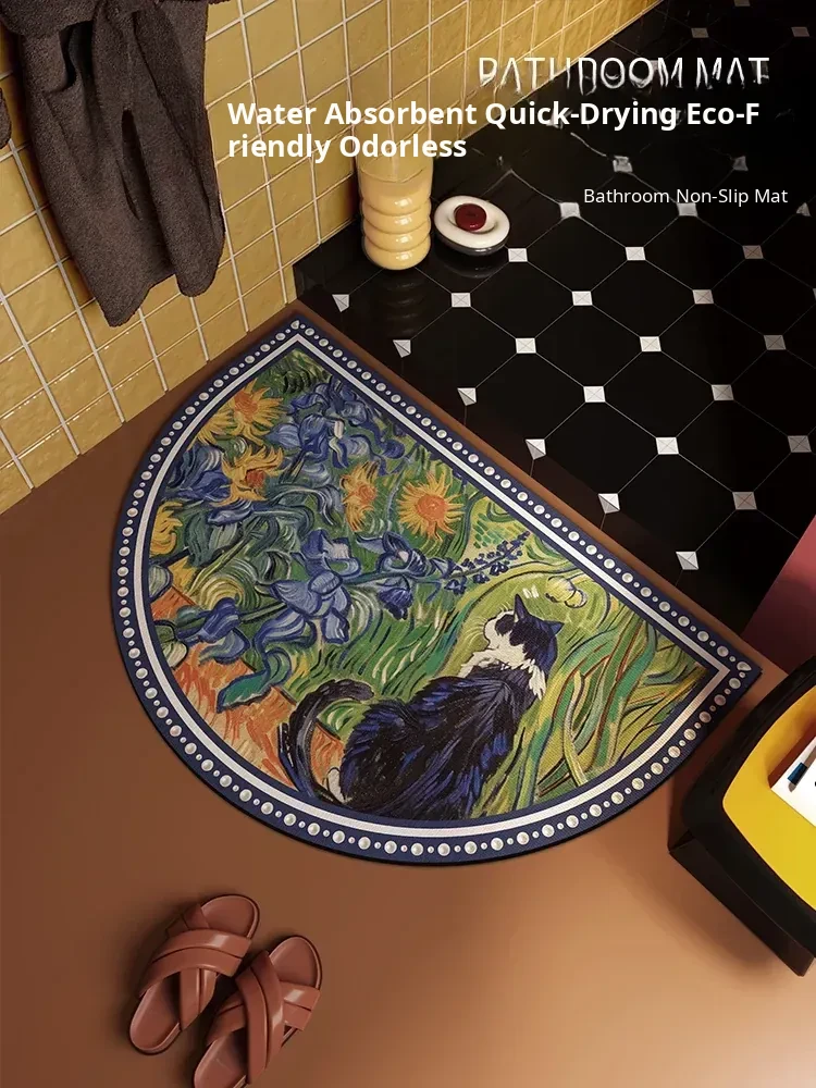 Elegant Oil Painting Style Diatomaceous Earth Bath Mat - Non-Slip, Absorbent Half-Round Rug for Bathroom & Entrance, Perfect for a Luxurious Touch