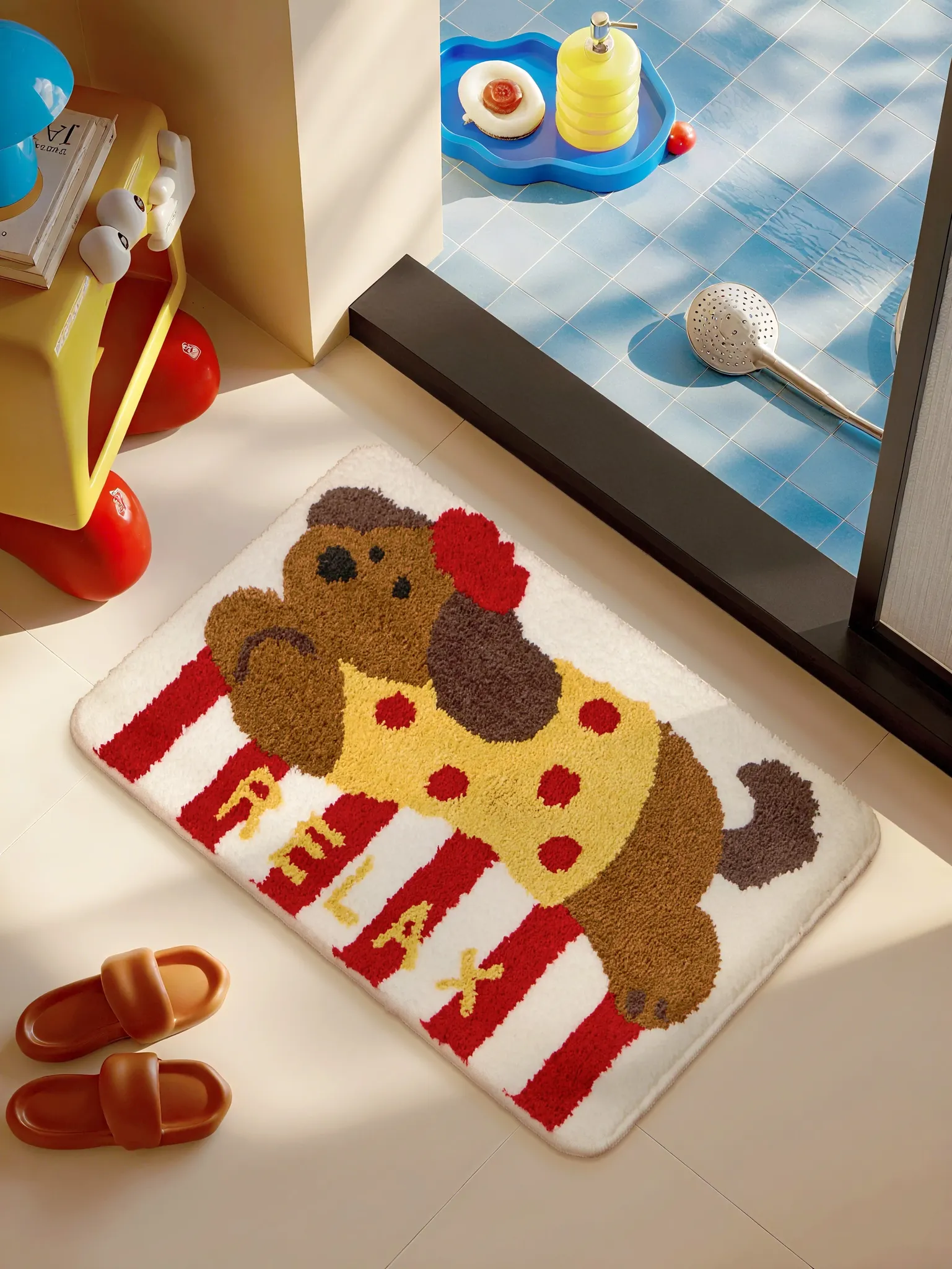 Cartoon Absorbent Bath Mat - Extra Thick Non-Slip Oval Lamb Fleece Rug for Bathroom and Toilet Entrance