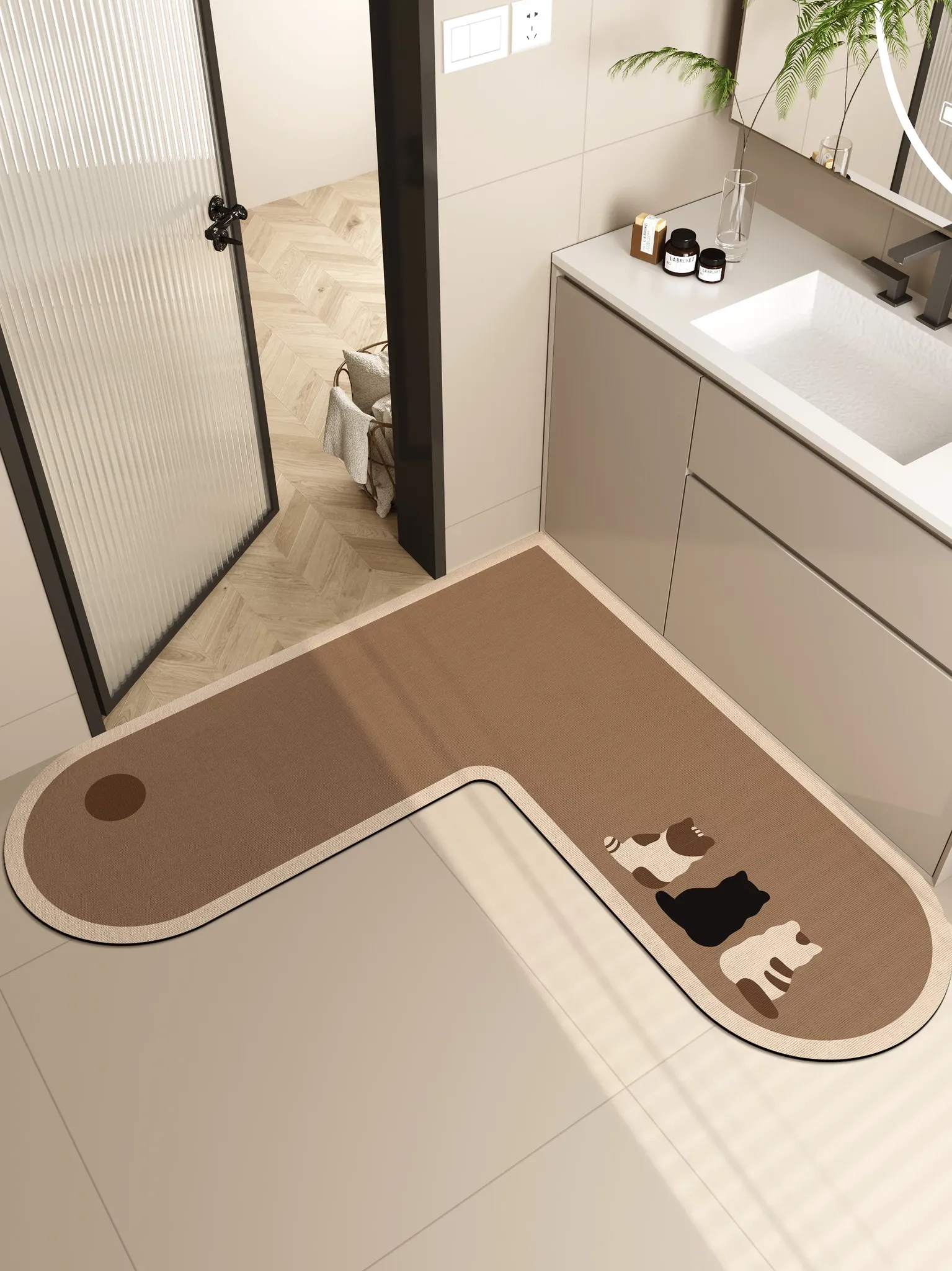 L-Shaped Absorbent Bathroom Mat - Stylish Non-Slip Corner Rug for Home Washbasin, Perfect for Bathroom Doorway