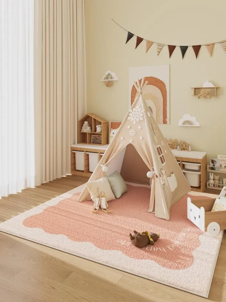 Cute Plush Thick Area Rug for Kids' Bedroom - American Style Bedside Carpet, 2026 New Arrival Living Room Sofa Mat