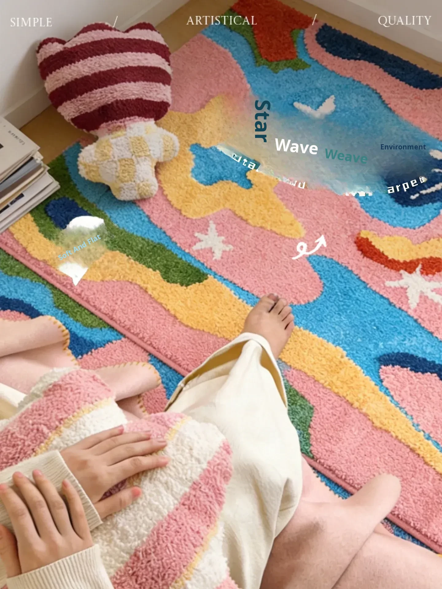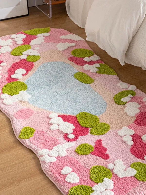 Creamy Wind Bedside Carpet - Thick Dopamine Floor Mat for Master Bedroom & Living Room, Irregular Shape, Low-Maintenance Area Rug for Effortless Style and Comfort
