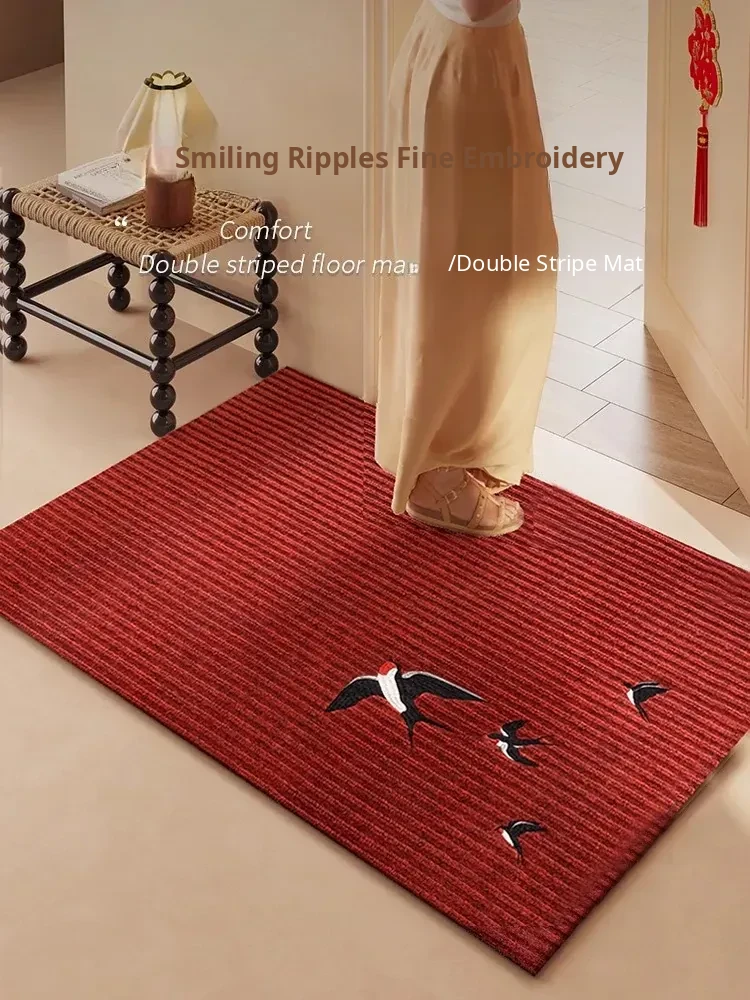 Safe Entry Red Stretch Fabric Door Mat for New Year - Festive Non-Slip Rug for Home Entrance, Perfect for Celebrations and Ensuring Safety