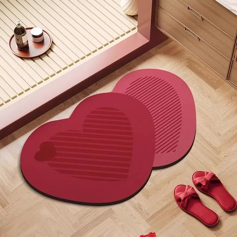 "Romantic Heart-Shaped Non-Slip Bath Mat for Weddings - Festive Red Absorbent Shower Rug for Home Use - Perfect for Bathrooms and Restrooms"