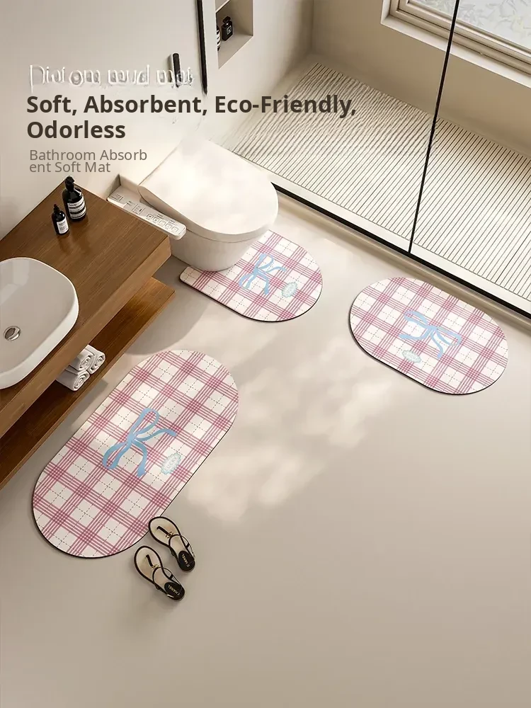 Dopamine Arc-Shaped Bath Mat - Cartoon Absorbent Shower Rug, Anti-Slip Diatomite Bathroom Carpet for Ultimate Comfort and Safety
