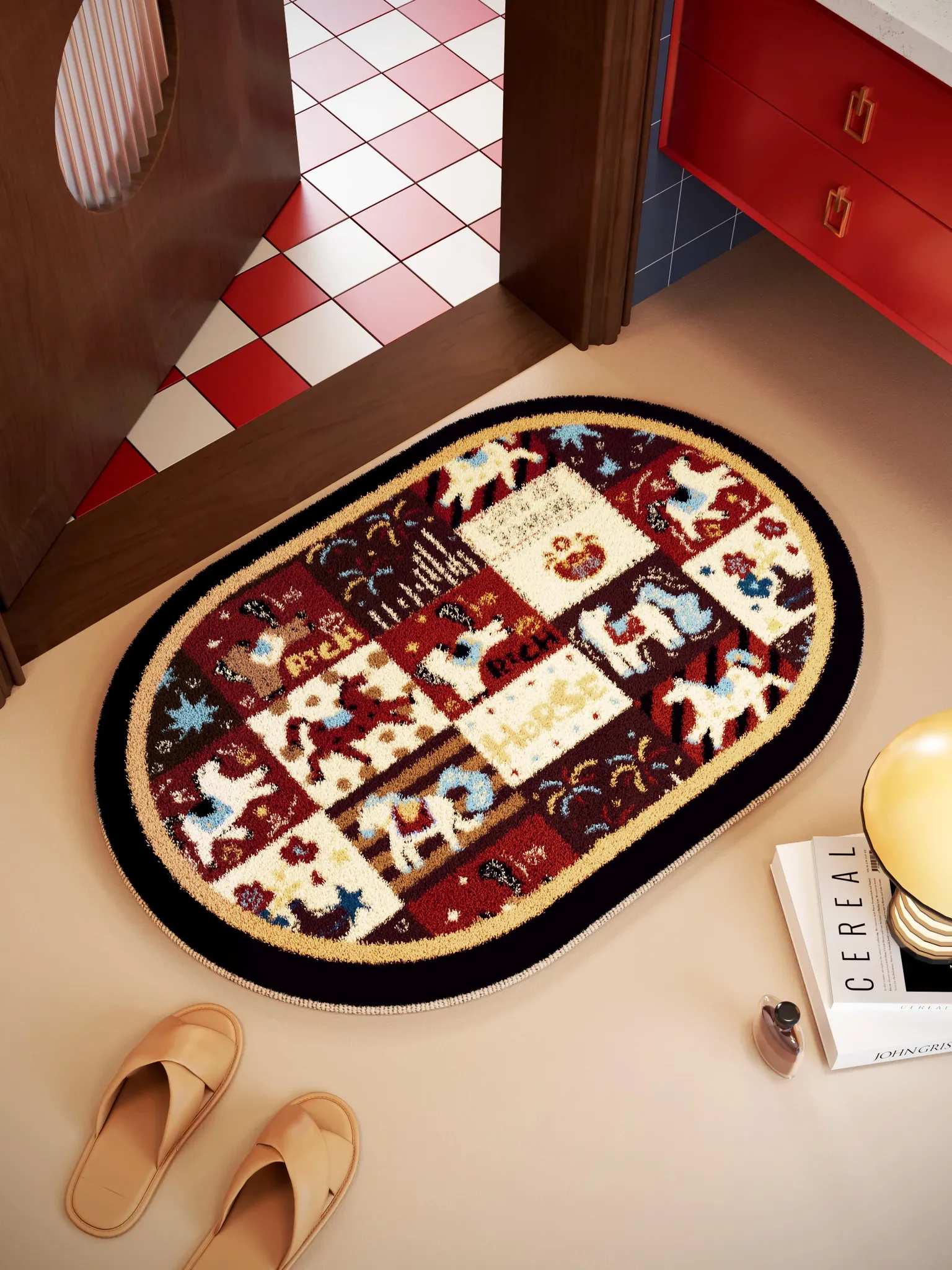 Vintage Plush Bath Mat - Year of the Horse Design, Super Absorbent and Thick Winter Bathroom Rug, Non-Slip Entrance Mat for Ultimate Comfort and Safety