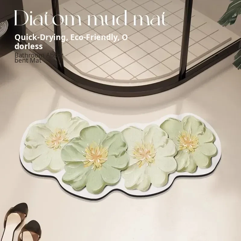 Fresh and Stylish Curved Bathroom Mat - Quick-Dry, Absorbent Diatom Mud Bath Mat for Shower Door Entrance, Fan-Shaped Non-Slip Carpet