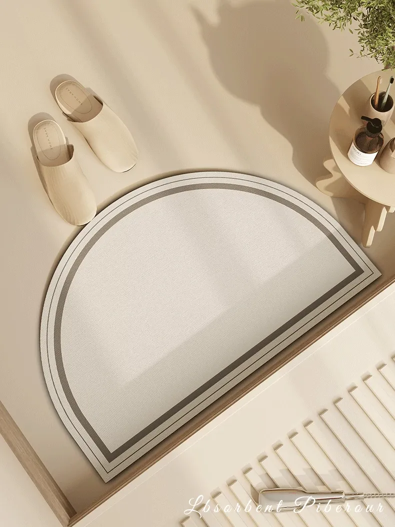American Vintage Half-Circle Bath Mat - Absorbent, Non-Slip Diatomaceous Earth Bathroom Door Mat for Quick-Drying and Ultimate Comfort