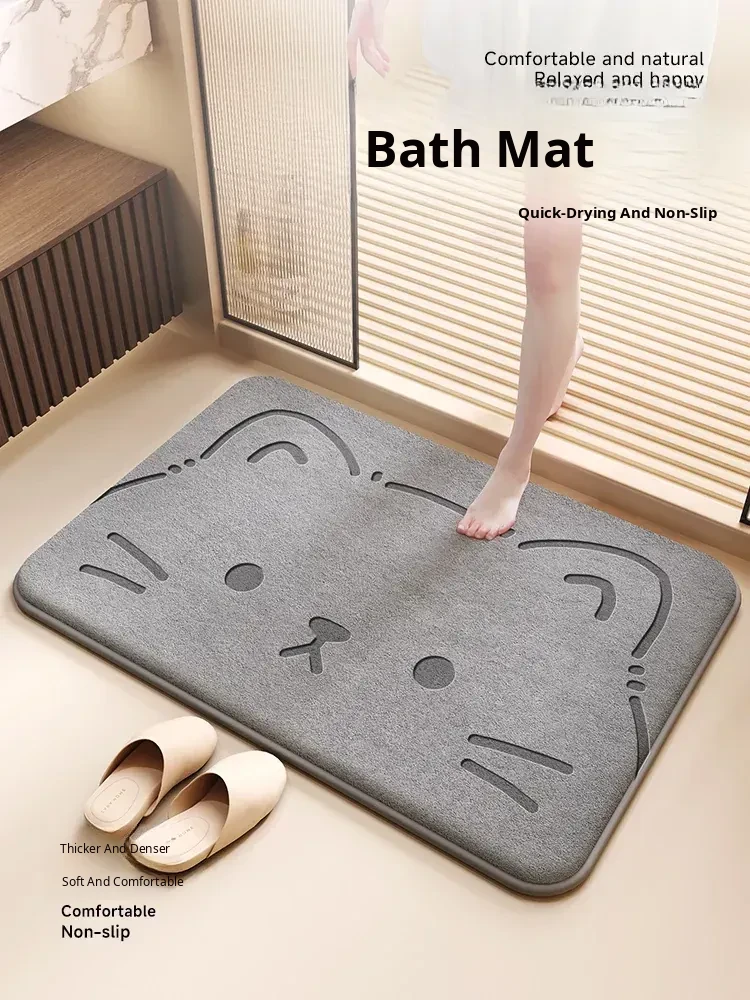 Cartoon Bath Mat - Absorbent Diatomaceous Earth Non-Slip Mat for Bathroom Entrance, Ideal Water-Blocking Carpet for Toilet and Restroom Use