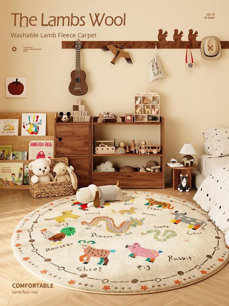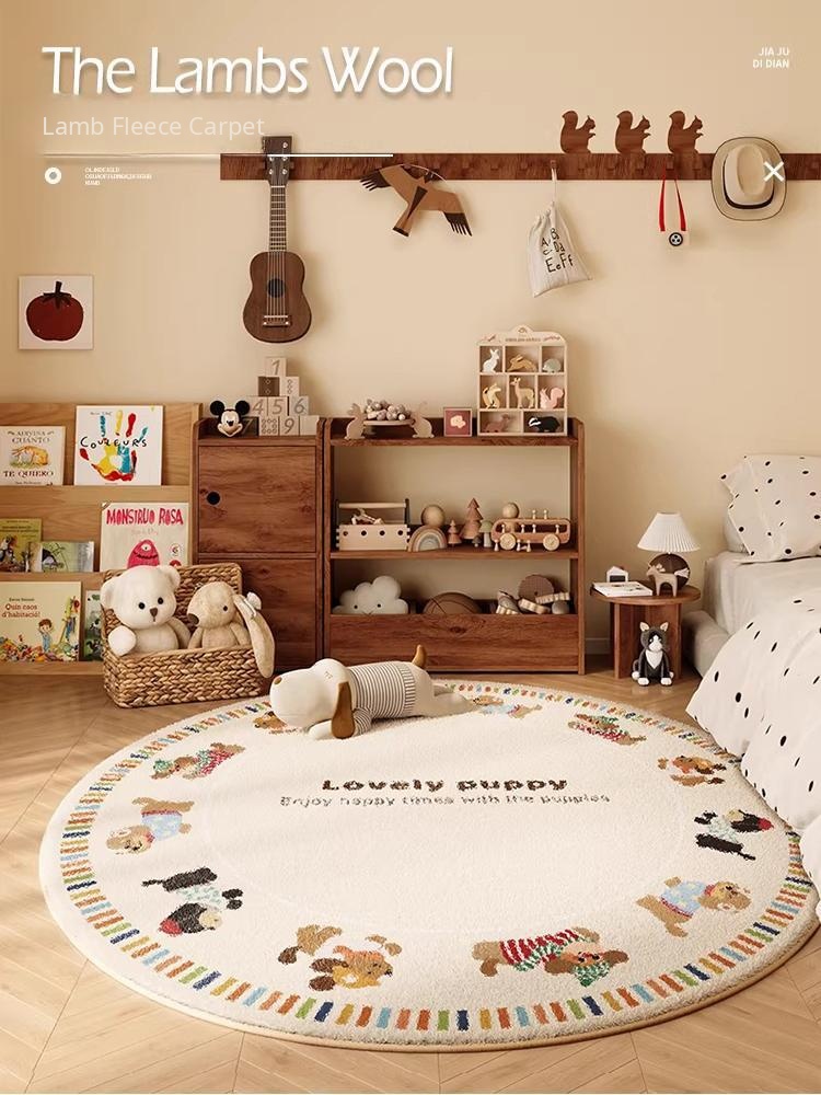 Cozy Round Plush Carpet for Kids' Room - Thickened Bedside Mat and Reading Area Rug, Perfect for Tent Play and Winter Use, Low-Maintenance and Ideal for Milestone Celebrations!