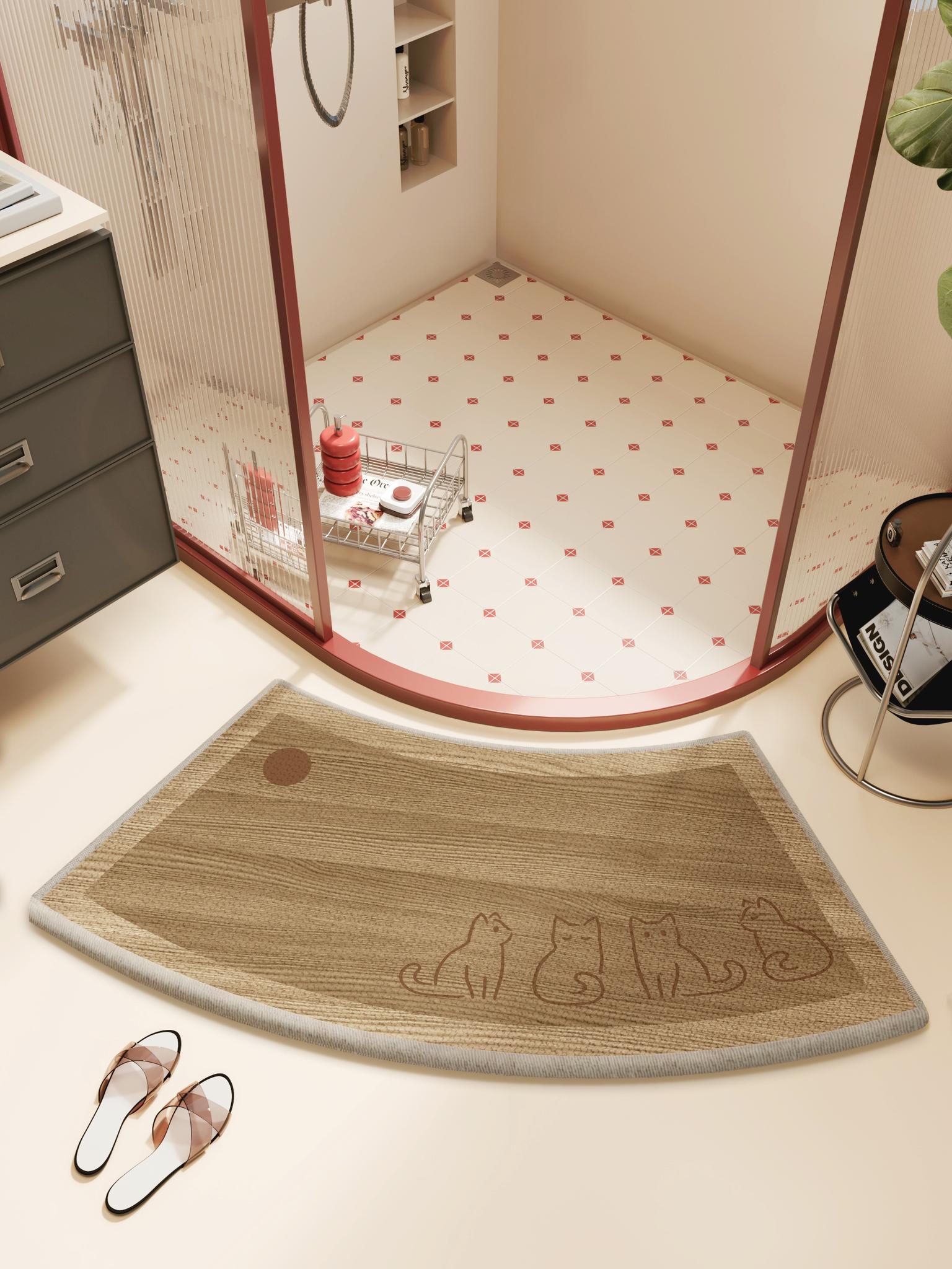 Wood Grain Arc-Shaped Bathroom Mat - Absorbent, Non-Slip Bathroom Rug for Shower Door - Cartoon Design Floor Carpet for a Fun and Safe Experience