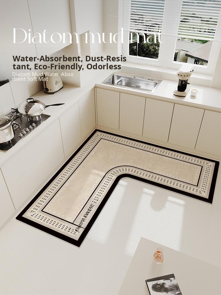 Kitchen-Specific Diatom Mud L-Shaped Water Absorbent Mat - Home Use, Non-Slip, Wipeable, Wash-Free, Oil-Resistant, Stain-Resistant Carpet