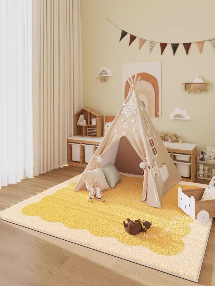 Creamy Wind Square Carpet for Kids' Room - Cozy Tent, Rocking Chair Mat, Plush Area Rug for Bedroom and Living Room, Ideal for Nursery, Soft Thick Foot Mat, Perfect for INS Style Decor