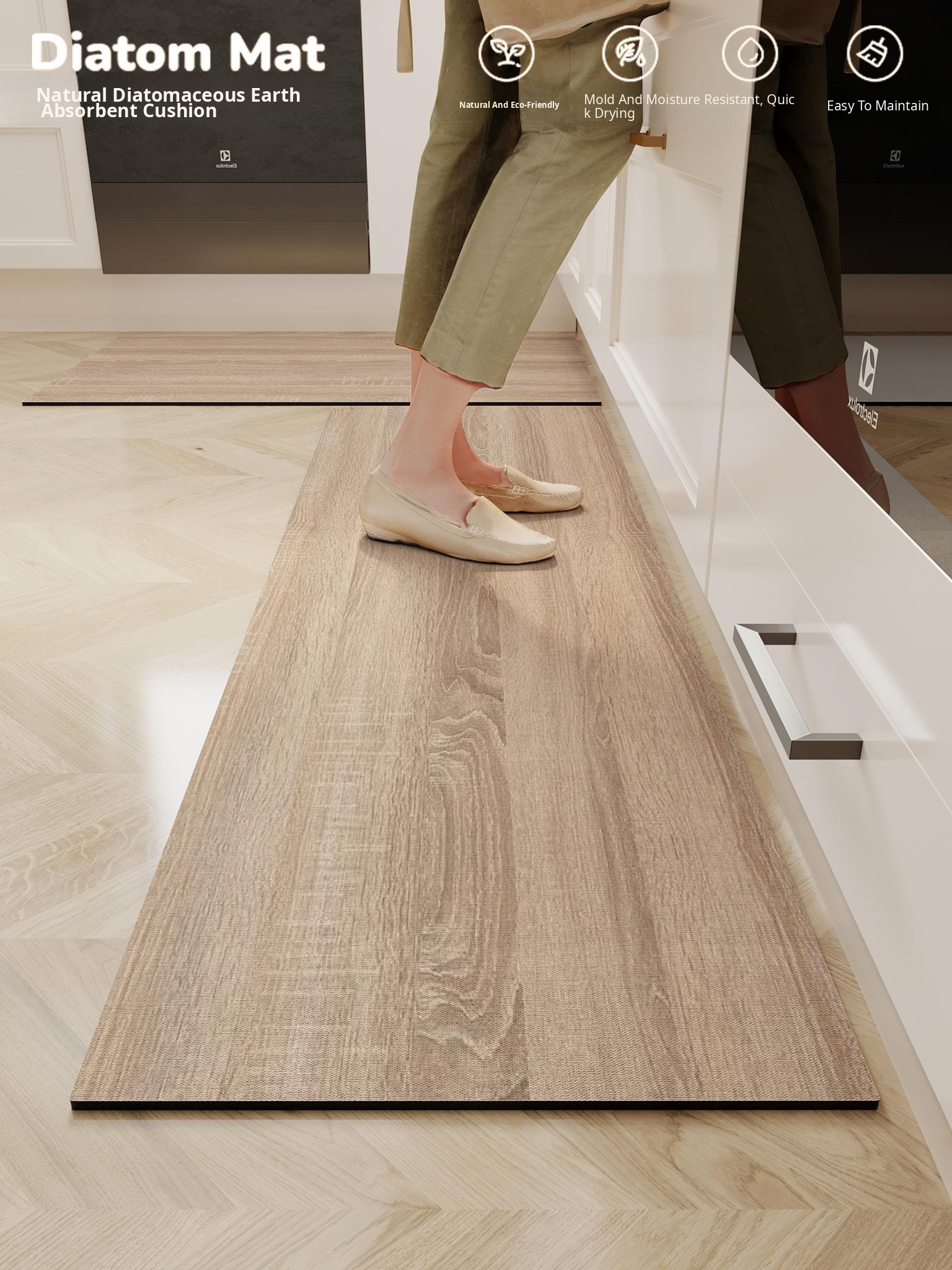 Premium Kitchen Anti-Oil Stain Floor Mat - Stylish Wood Grain Design, Easy-Clean, Diatom Mud Absorbent, Non-Slip Rug for Ultimate Comfort and Safety